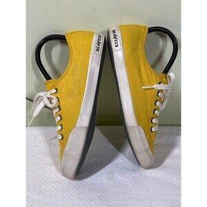 Step out in style with these Seavees Monterey canvas sneakers. With a lace-up closure and low-top shoe shaft style, these sneakers are perfect for any casual occasion. The mustard yellow color adds a pop of color to your outfit. Made with breathable and comfortable features, these sneakers are perfect for all seasons, whether it's winter, summer, fall, or spring. The rubber outsole material provides extra cushioning and support. These SeaVees Monterey sneakers are a classic and stylish choice for any beach, vacation, or hip-hop theme. Available in women's US shoe size 7, UK shoe size 5, and EU shoe size 37.5.
