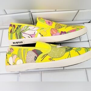 Seavees Trina Turk Baja Slip On Canvas Shoe Fashion Sneaker Yellow Tropical Flor