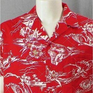 Seawind Hawaiian Islands Red Shirt Tiki Hut Palm Trees Matched Pocket Size XL