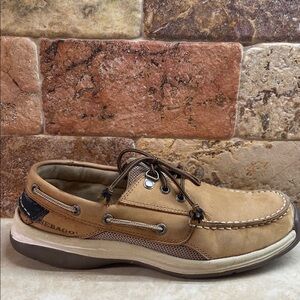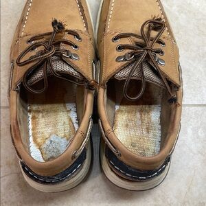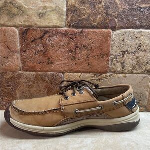 Sebago Helmsman Dark Tan Leather Boat Shoes Men’s 8M Moc Toe Deck Casual Lace