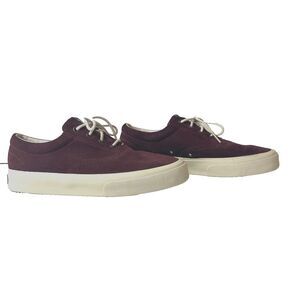 Step into comfort and style with these Sebago Docksides shoes! These burgundy suede lace-up sneakers are in pre-owned, well-kept condition and are very clean with only light wear. The bottom sole is in great shape, with a wear rating of 9.8 out of 10. The inside of the shoes feels even, with no bumps or tears.