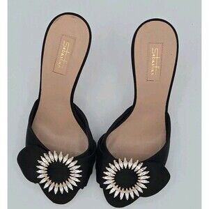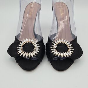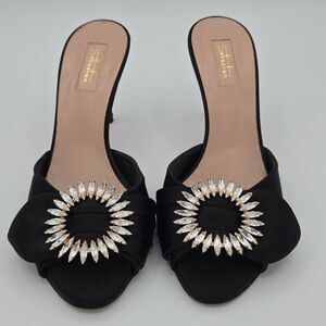 Sebastian Black Crystal Heels Size 8 EU 38 Slip-On Peep Toe Sandals Elegant