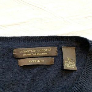 Sebastian Cooper Cotton Cashmere Blend Argyle Sweater Modern Fit Knit V Neck XL