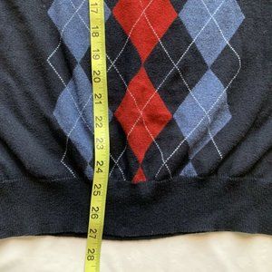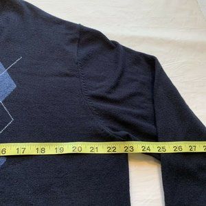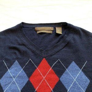 Sebastian Cooper Cotton Cashmere Blend Argyle Sweater Modern Fit Knit V Neck XL