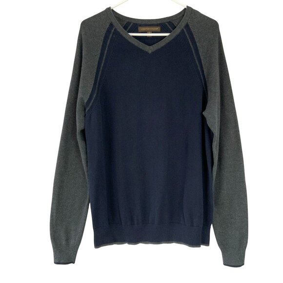 Sebastian Cooper Gray/Blue Long Sleeve V-Neck Pullover Knit Sweater Size M
