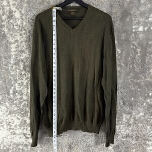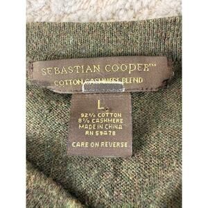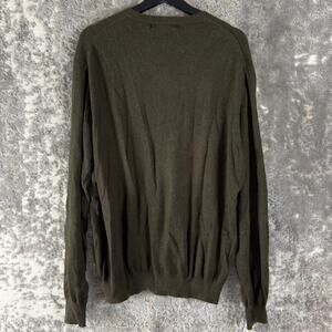 Sebastian Cooper Size L Cashmere Cotton Blend V Neck Sweater Olive Green Pullove