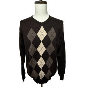Sebastian Cooper Sweater Mens Cashmere Blend Large Brown Tan Argyle Preppy