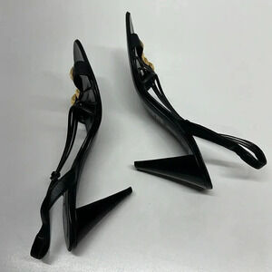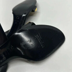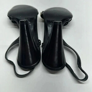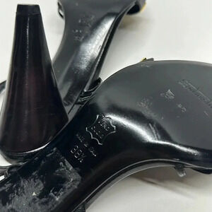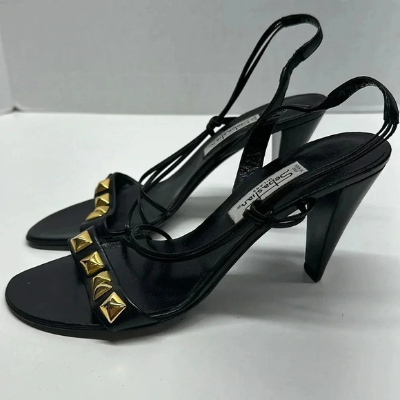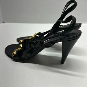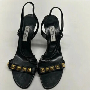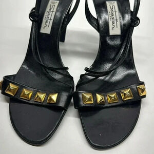 Sebastian Milano High Heels Open Toe Leather Ankle Strap Gold Studded Black 38.5