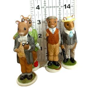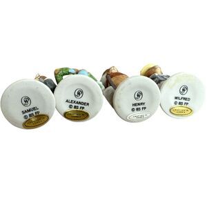 Lot of 4 Sebastian Miniatures hand-painted ceramic mouse figurines featuring Samuel, Alexander, Henry, and Wilfred. These charming Victorian-style characters each stand approximately 3.5–4 inches tall and are stamped with their names and FP markings on the bases.