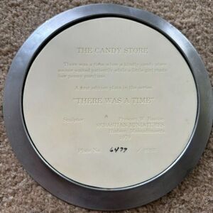Sebastian Miniatures There Was A Time The Candy Store 6” Collectors Plate. Cream colored plate with colorful candy store scene. Metal floral rim. Good condition. Plate No. 6477/15000