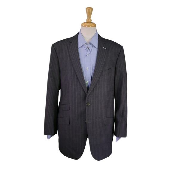 Sebastien Grey Clothiers Bespoke Gray Pinstripe 2-Btn Wool Blazer Jacket 46R