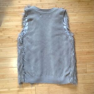 A vest that has faux fur on front which is lined and has pockets. Back is a knit sweater. Dry Clean Only
