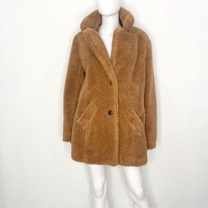 Sebby Collection Shearling Sherpa Teddy Longline Coat Faux Fur Camel tan XS