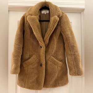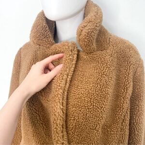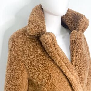 Sebby Collection Shearling Sherpa Teddy Longline Coat Faux Fur Nutmeg Camel Tan Brown. Size XS. I wear a small typically and am trying to g it on in the photos. I would say it’s pretty true to size for an oversized XS. Excellent condition.