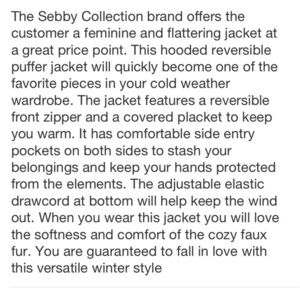 Sebby Collection Women's Puffer Jacket Reversible Cozy Faux Fur Hood Graphite