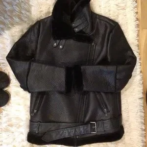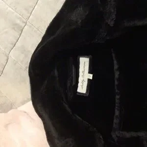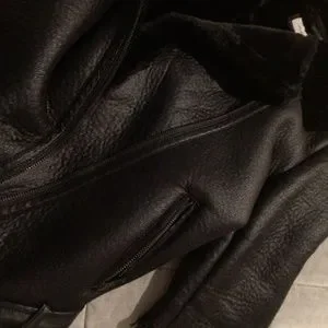 Faux fur lined, medium, Sebby Collection, black, angled zipper, hip stationed belt, pockets. An exquisite and excellent wear.