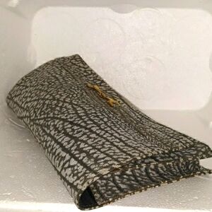 Vintage Seberini Suede Leather Textured Grey Clutch with Gold Buckle.