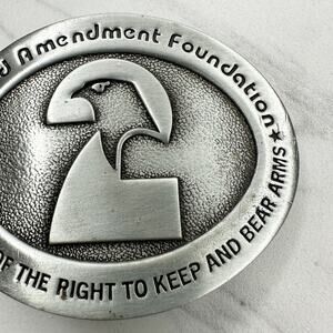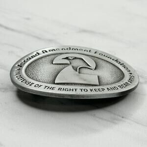 Collectible Second Amendment Foundation belt buckle featuring their iconic "Defense of the Right to Keep and Bear Arms" messaging! Perfect piece for collectors or supporters.