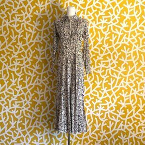 Second Female Maxi Front Button Long Sleeve White Black Yellow Floral Dress S/M