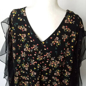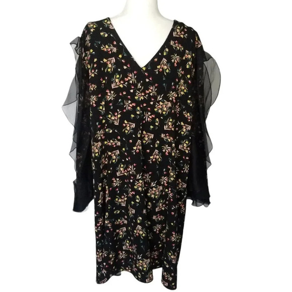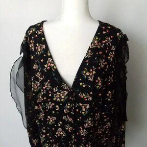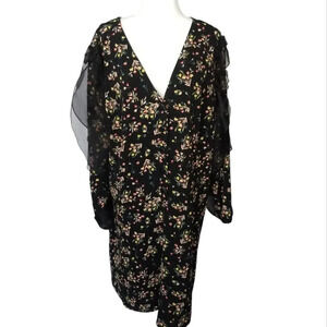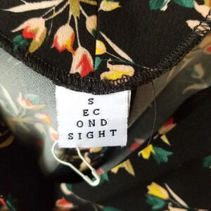 Second Sight Women Black Floral Casual Short Dress Long Sleeve Ruffles Size 7