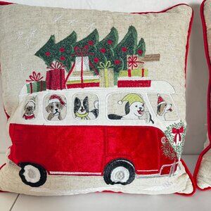 2 Secret Celebrity Christmas Tree Van Throw Pillows 16x16" Embroidered Holiday Decor Dogs and Gifts Down Filled. Beautiful and colorful pre-owned Christmas pillows in great condition, has some wear as you'd expect from a used item. No rips, tears or discolorations. Please use the zoom feature to determine shape and condition, check all pictures and measurements carefully for detailed viewing as they are part of the description and help you with your purchase. I invite you to always check my new listings, buy with confidence. Smoke free home. Thank you, have a wonderful day!!
