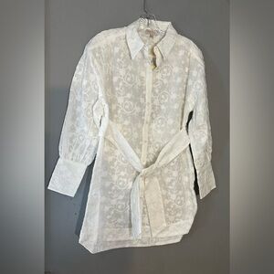 Secret Mission White Embroidered Mini Shirt Dress Belted Size Small