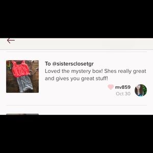 Offering a mystery surprise box!! Sizes XSmall, Small, medium or large. Each box will contain multiple items. Some may be from my closet while others will be items I haven’t posted yet 😊❤️.