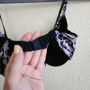 Secret Possessions Bra 34D Gray Black Lace Underwire Padded Demi Retro