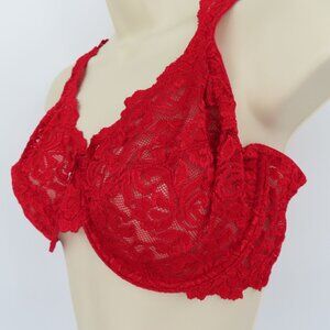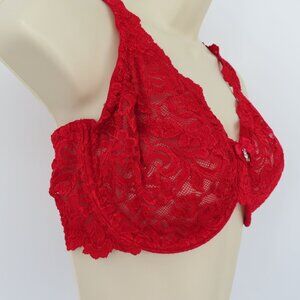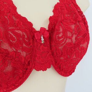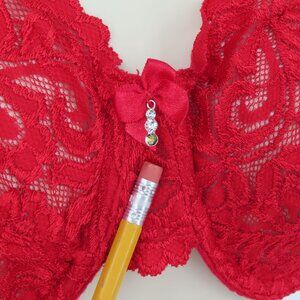 Secret Treasures 38D Bra Rhinestone Sheer Solid Red Lace Mesh Underwire Unlined