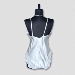 Secret Treasures Bodysuit Embroidered Ruffle Satin White Size Medium