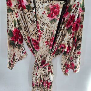 Secret Treasures Cream Animal Print Floral Lace Belt Robe 3x 24-26w