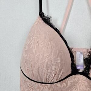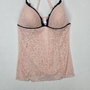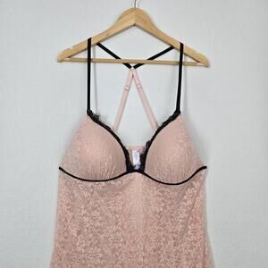 Secret Treasures Sheer Lace Chemise Babydoll Lingerie sz 2X Pink with Black Lace Accents. Padded cups. Fairycore