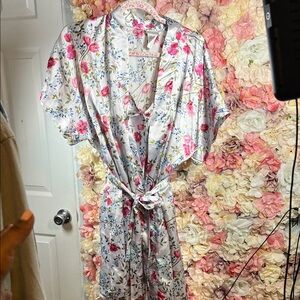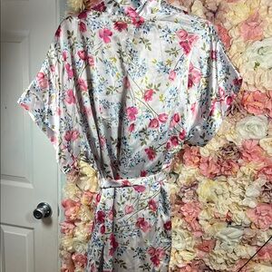 Charming floral robe with a pink and white pattern. Ideal for relaxing at home.