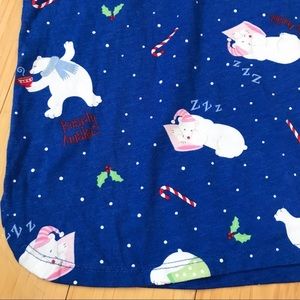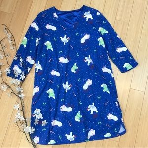 Polar bear themed nightgown sleep shirt, size S/M. By Secret Treasures. “Barely awake“. Bust measures 20 inches, length 35 inches, sleeve 18 inches. Cute and comfortable, excellent condition.