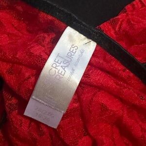 Elegant red lace chemise. Features delicate black trim. Perfect for intimate wear. Vampire Goth Vibes