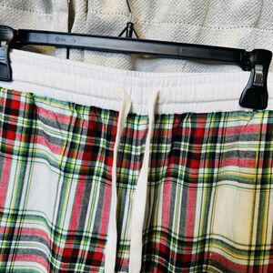 Experience ultimate comfort with Secret Treasures pj pants, featuring a vibrant red and green design. These pajama pants are perfect for lounging, offering a relaxed fit with elastic cuffs for added style. Made from soft, cozy fabric, they ensure a snug and comfortable wear all day long. 100% cotton. Elastic waistband with a drawstring closure. They have pockets. Inseam 29 inches. Waist measurement 42 inches.