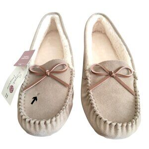 Secret Treasures Size 11 Slippers Genuine Suede Moccasin Plush Lining Bow Accent