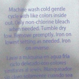 Easy Care: Machine Wash Inside Out Cold Gentle Cycle Non-Chlorine Bleach Only Tumble Dry Low Remove Promptly