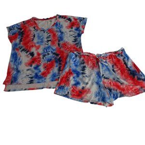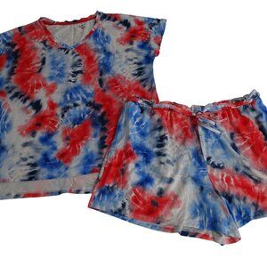 Secret Treasures Tie Dye Red White Blue Pajama Lounge Top/Shorts Set
