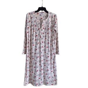 Secret Treasures Winter White Red Cardinal Print Night Gown & Red Robe Sz Medium