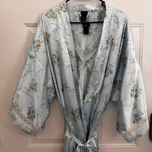 Secret Treasures Women Nightgown & Robe Set 2X Blue Floral Lace