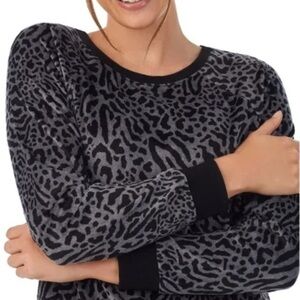 Secret Treasures Women's Gray Black Animal Print Velour Top SOFT Size Large