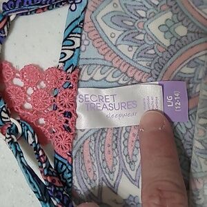 Secret Treasures women's gown size Large (12-14). Featuring a lively mix of pink and blue patterns. Very soft & comfortable.