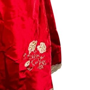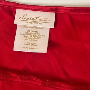 Beautiful Secret Treasures red nightgown featuring elegant ivory lace trim, sequin accents, and a delicate floral design. Soft and comfortable fabric with a flattering fit — perfect for lounging or sleep. In excellent preowned condition, clean and ready to wear. Women’s size XL