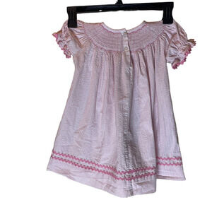 Secret Wishes Pink Smocked Seersucker Cupcake Dress with Ric Rac