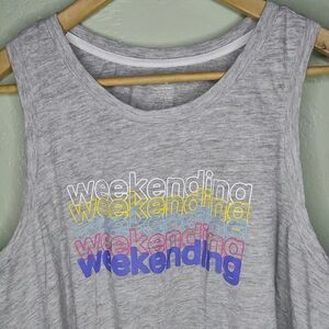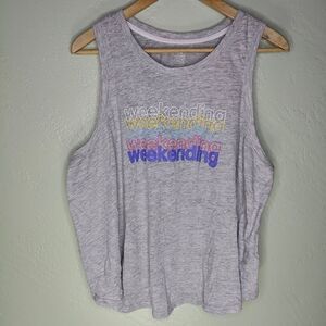comfort athletic athlete fitness athleisure lounge loungewear curvy plus size curve woman's tank sleeveless stretch casual everyday weekend chill graphic simple
