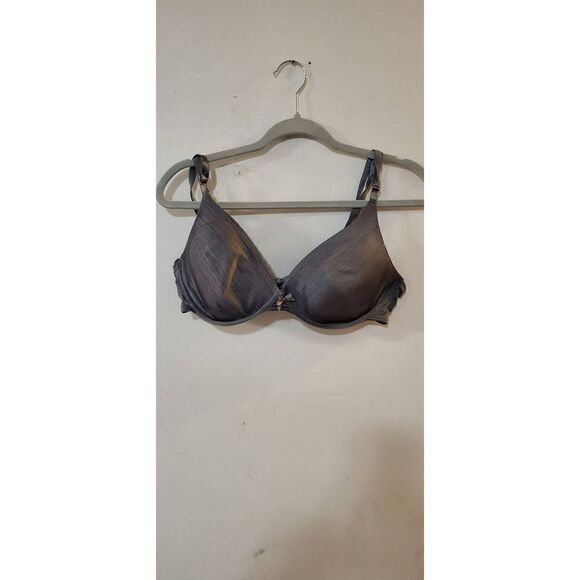 Secret Treasures dark grey bra with underwire, adjustable straps, 2 clip closure, size 40C, small decorative bow between bra cups, 93% polyester 7% spandex, excellent condition.