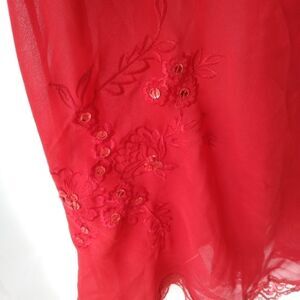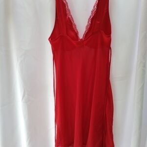 Red nighty, spaghetti strap with sequined design on the hem. Q