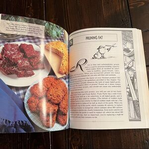 This soft-cover cookbook contains over 130 low-fat and fat-free recipes tasty items. The book has 232 pages of great information. The item was originally priced $13.95. It is 7 1/2” x 9”. The book is used and in very good condition. There a a couple of hand written notes from a past owner.