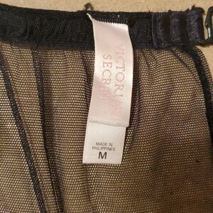 NWT Secret Treasures gray padded bra size 36D + Black semi sheer garter belt by Victoria's Secret, size Medium. Excellent pre loved condition, smoke free home, ships next day.
